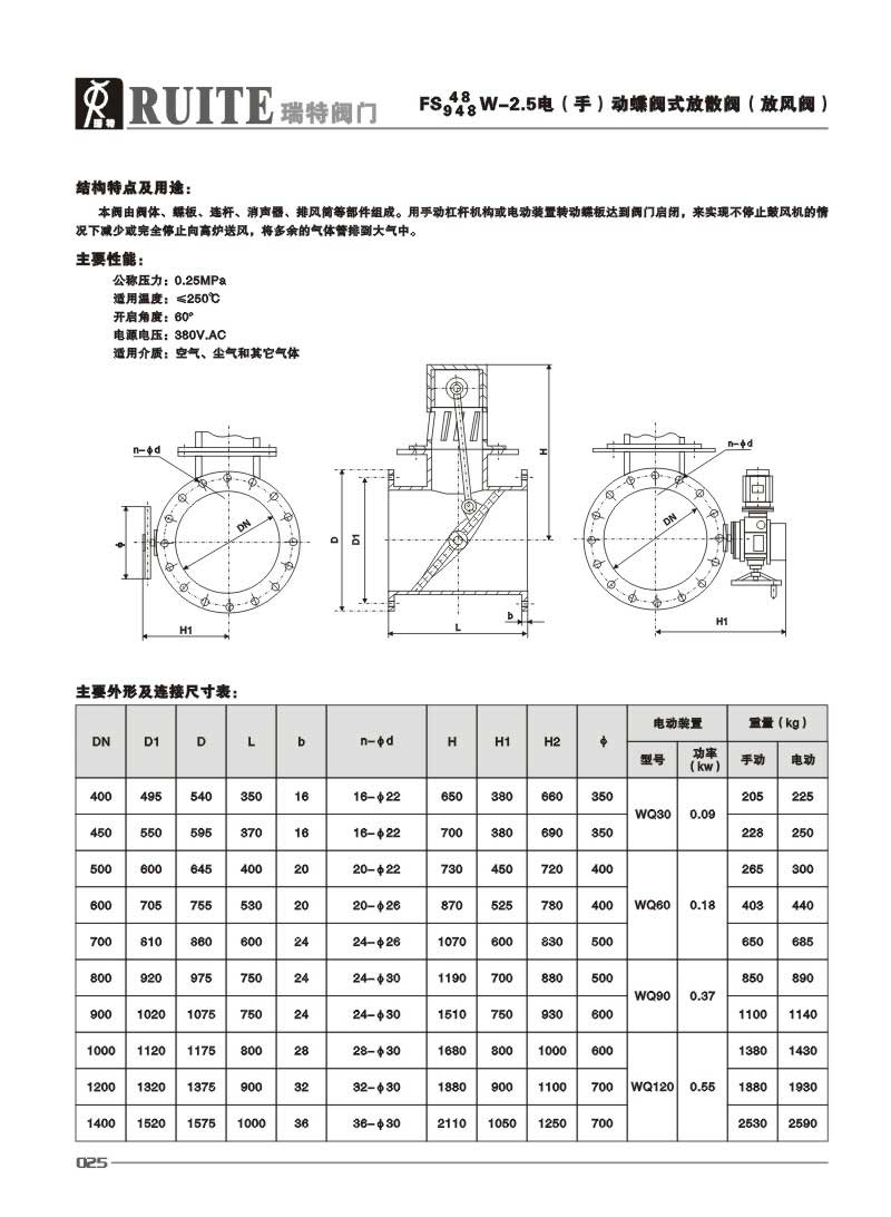 本閥由閥體、蝶板、閥桿、邊桿、排風(fēng)筒等零件組成。用手動(dòng)杠桿機(jī)構(gòu)轉(zhuǎn)動(dòng)蝶板實(shí)現(xiàn)閥門啟閉。